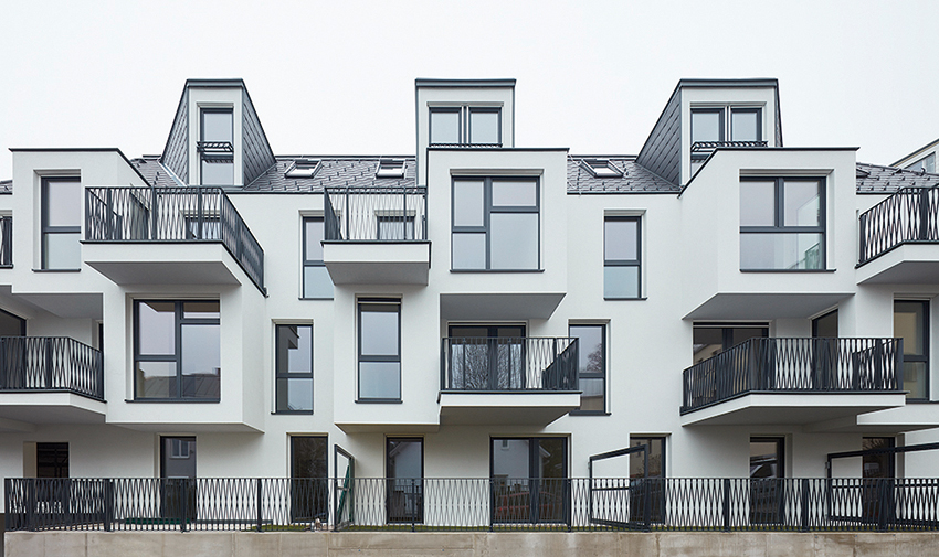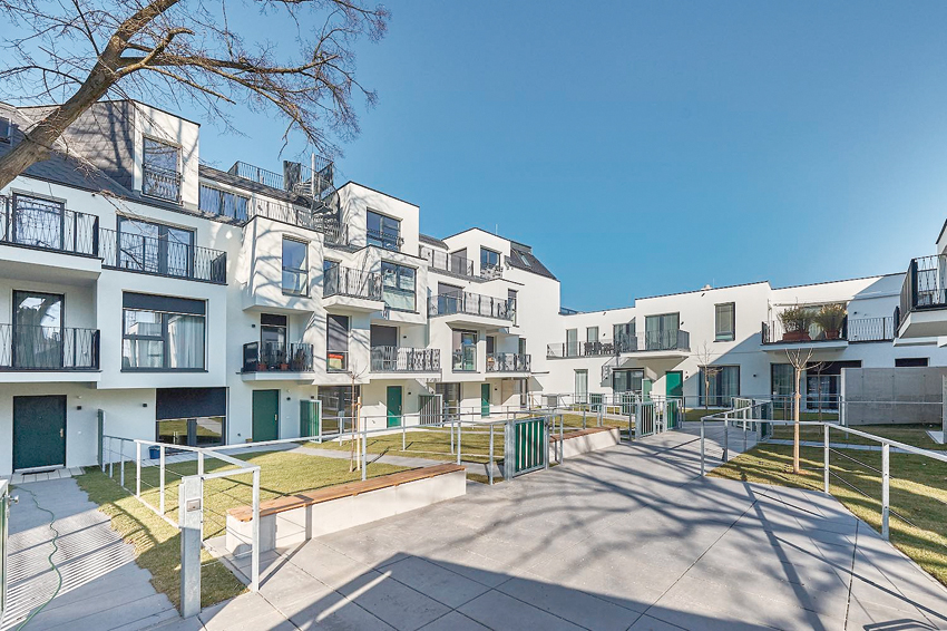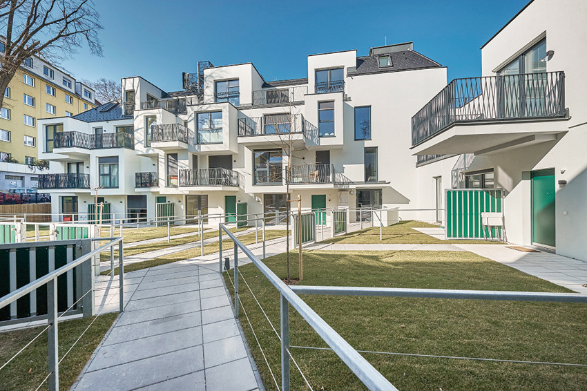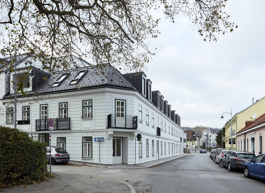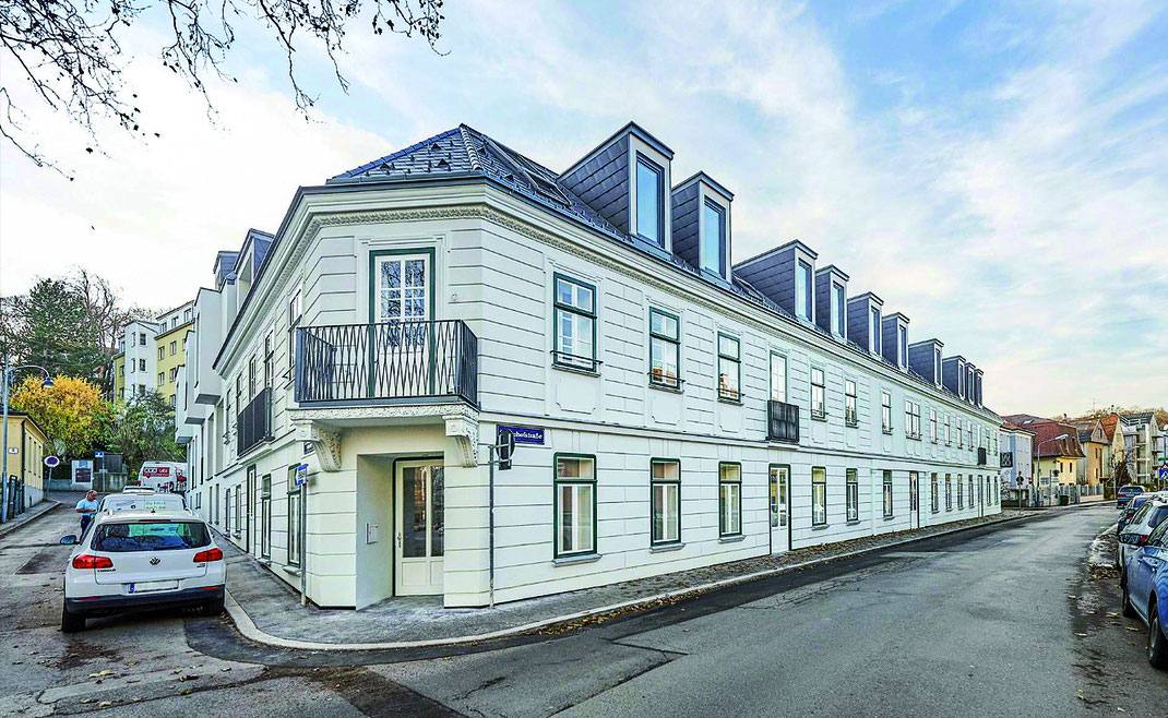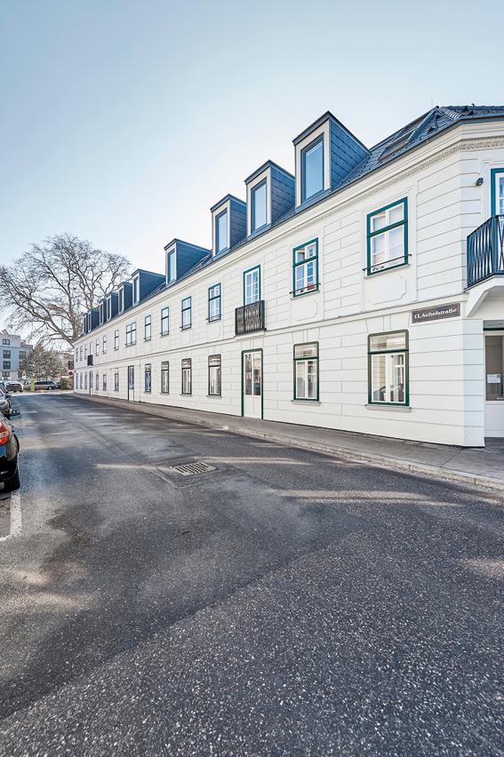 mustergültig renoviert wurde. Dafür gab‘s seitens der MA 19 sogar eine Förderung. Die Fassade des Bestandsgebäudes erhielt einen Anstrich in historisch überlieferter, weißer Farbe. Die