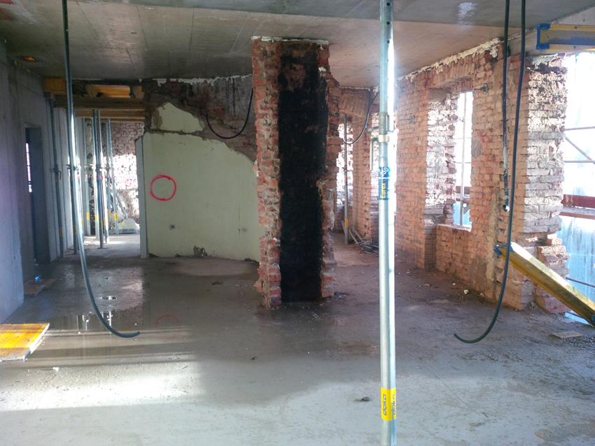 Von der ursprünglichen Bausubstanz des Gebäudes blieben rund 50 Prozent erhalten. Der Abtrag reichte bis zur Mittelmauer, die ebenfalls entfernt werden musste. Dies stellte vor allem für die